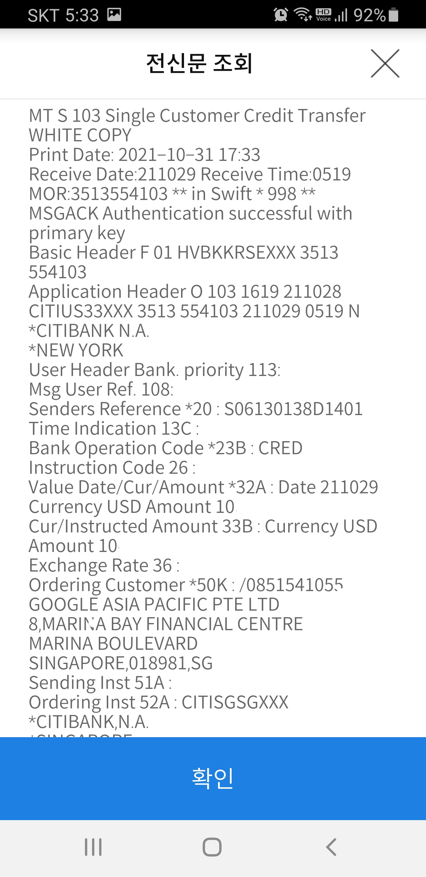 처음이라 전신문 조회도 해봤어요