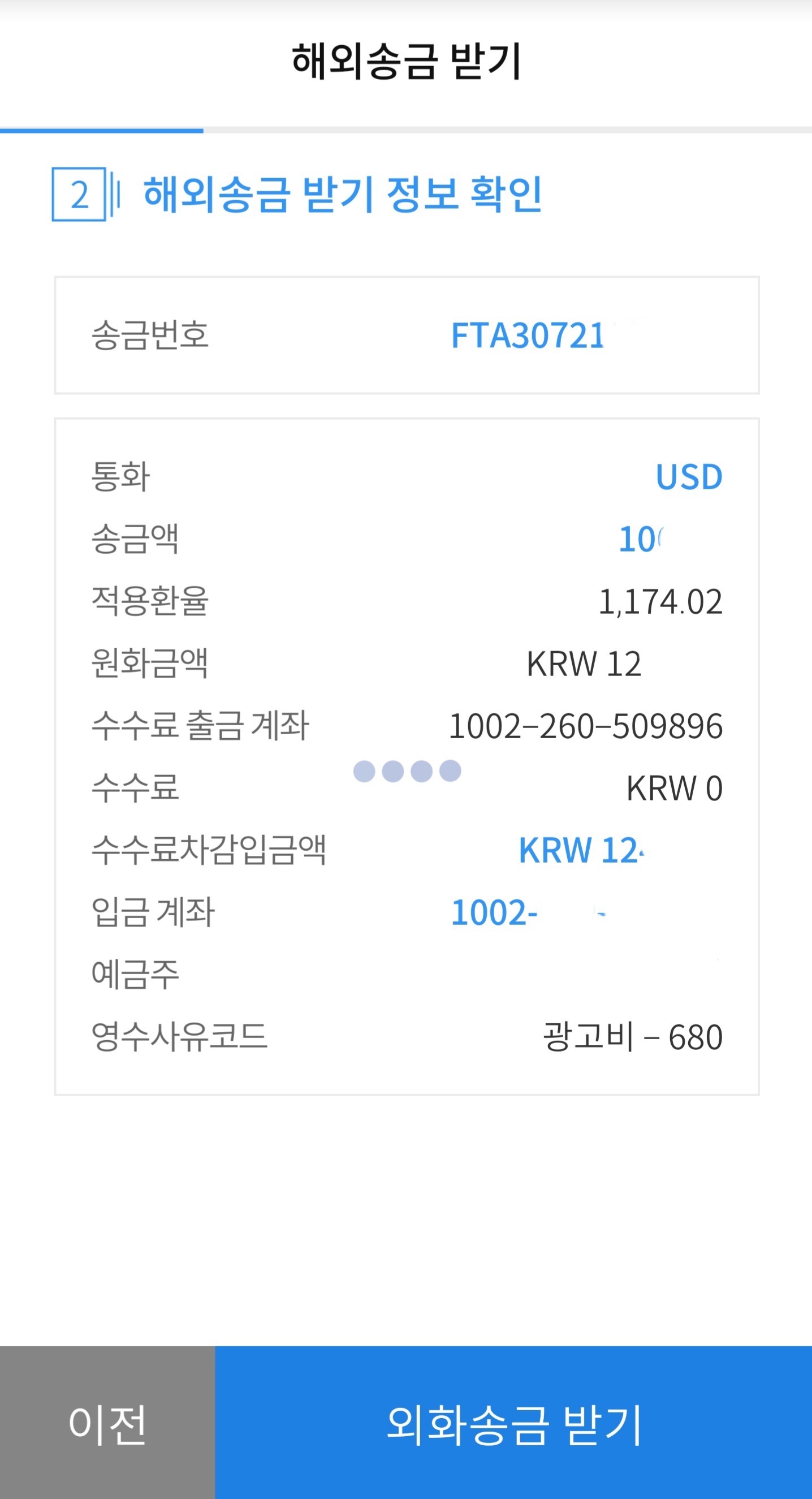 중간에 환율변동이 있어 전 OTP입력하다 한번 튕겼네요